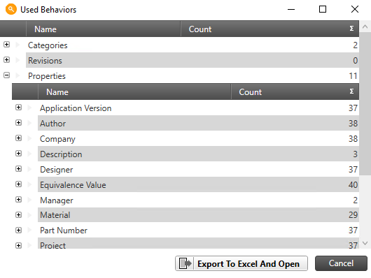 The “Used Behaviors” dialog gives you a report about the used behaviors in your BCP package e.g property definitions, categories, revisions, lifecycle and users.