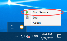When the service is stopped it can be started by right-clicking on the tray icon and clicking ‘Start Service’.