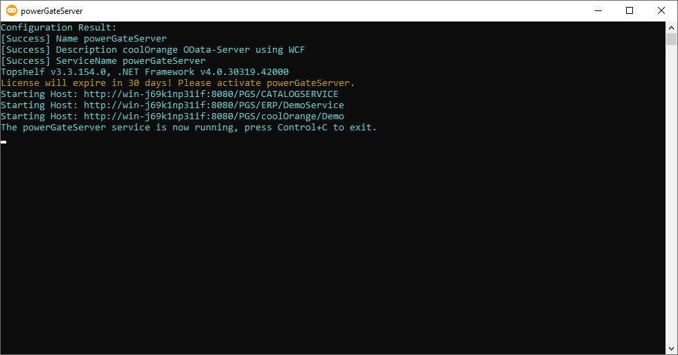 The WebService can later be accessed via this Url: http://localhost:8080/PGS/coolOrange/Demo/$metadata.