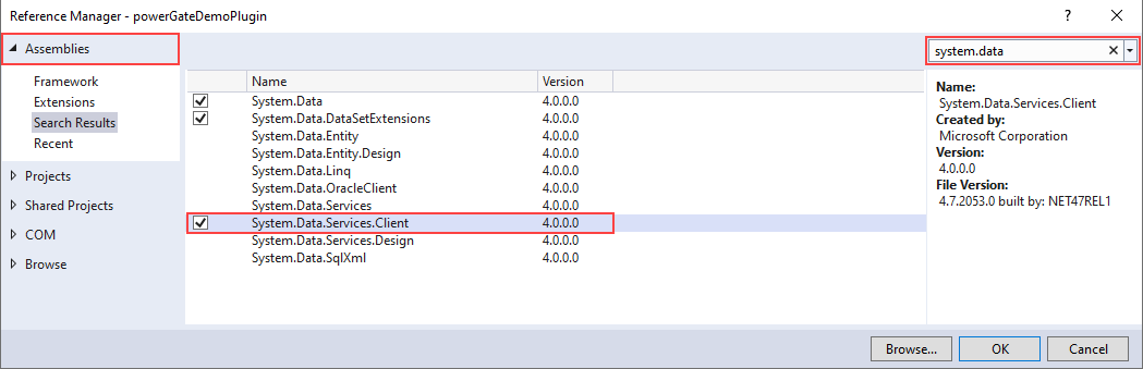 In this example we set the addin-path to bin\Debug\powerGateDemoPlugin assembly is.