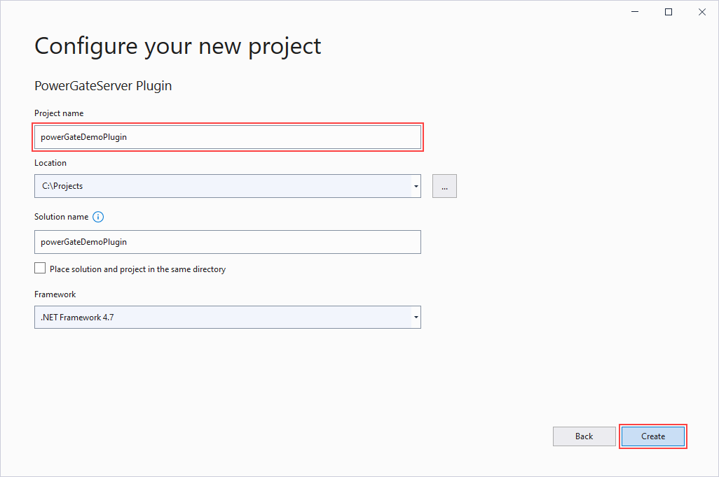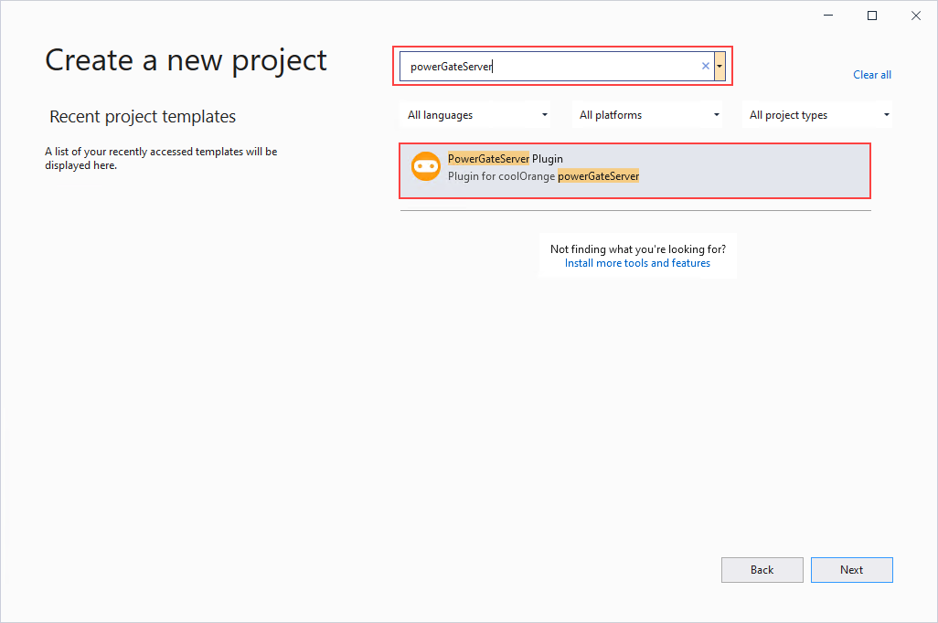 Start VisualStudio and create a new project by using the powerGateServer Plugin project template: