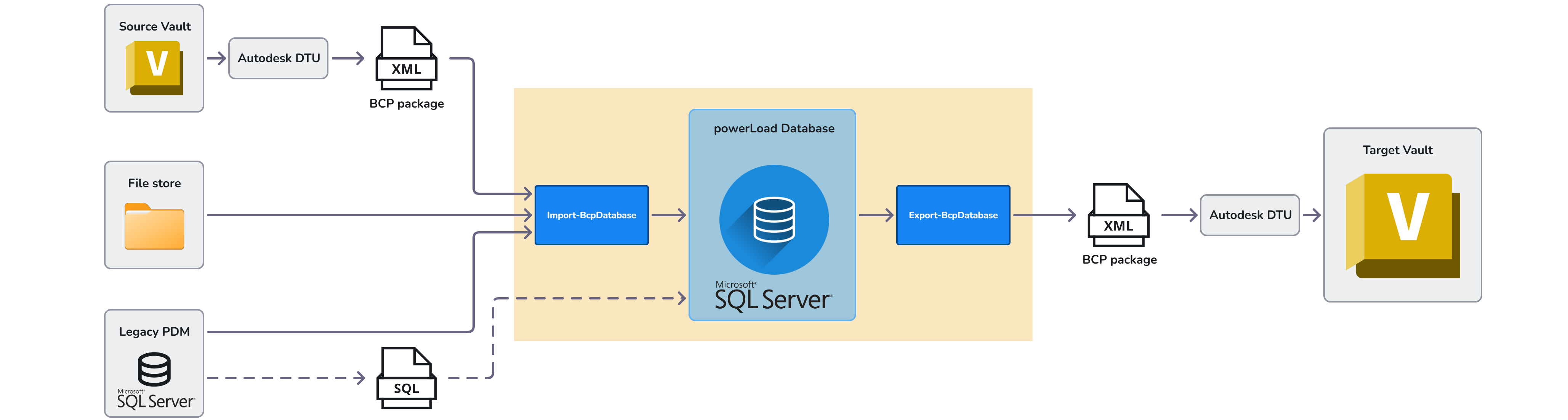 After the data is correctly prepared, the powerLoad DB can be exported as a BCP package and then imported into the target Vault.
