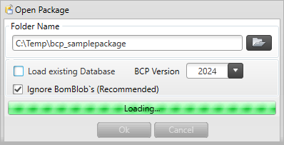 After opening the BCP package once, you can use the “Load existing Database” checkbox. For large packages, this option saves a lot of loading time.