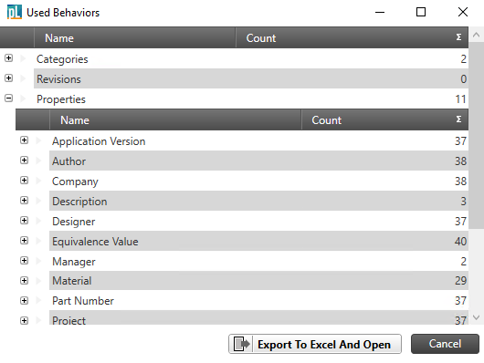 The “Used Behaviors” dialog gives you a report about the used behaviors in your BCP package e.g property definitions, categories, revisions, lifecycle and users.