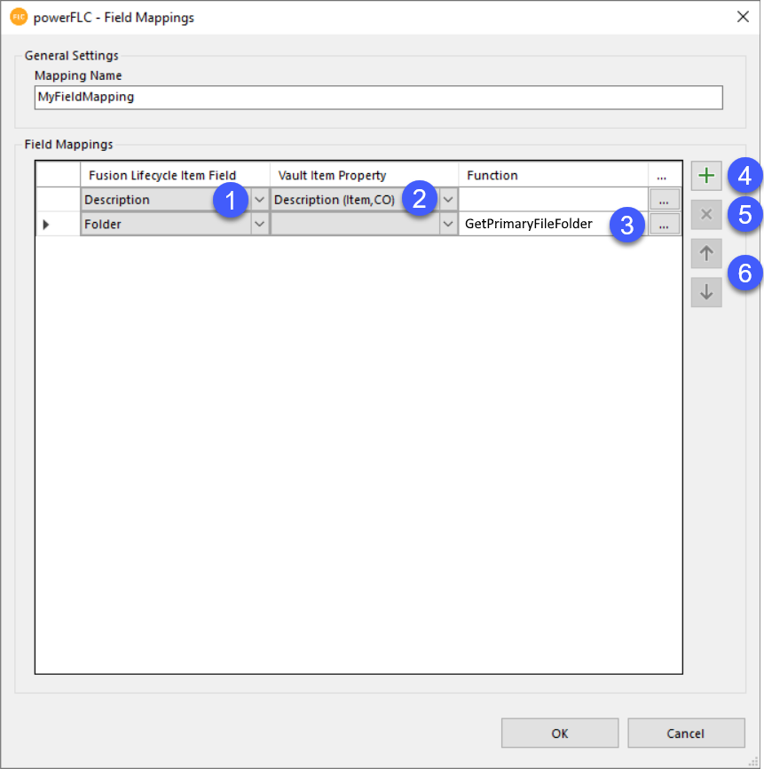 In some situations Item fields cannot be mapped directly to Vault properties, because the required information is not available as entity-property at all. In such cases a powerShell Function can be can be selected by clicking the