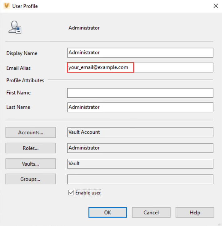 In order to give workflows the possibility to perform their actions with the correct Fusion 360 Manage user, the e-mail address of the Vault user that submitted the according job must be configured in the Vault User profile: