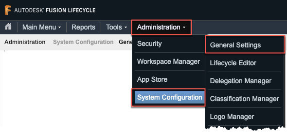 Navigate to your Fusion 360 Manage Site and click on Administration → System Configuration → General Settings