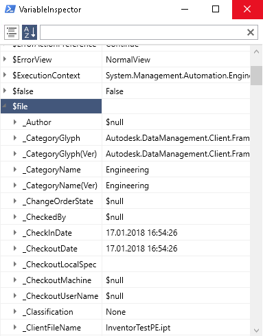 Opens the Inspector window, a debugging tool that displays all existing PowerShell variables and their values: