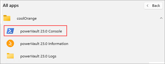 With the Vault Connection available, you can start working with powerVault.